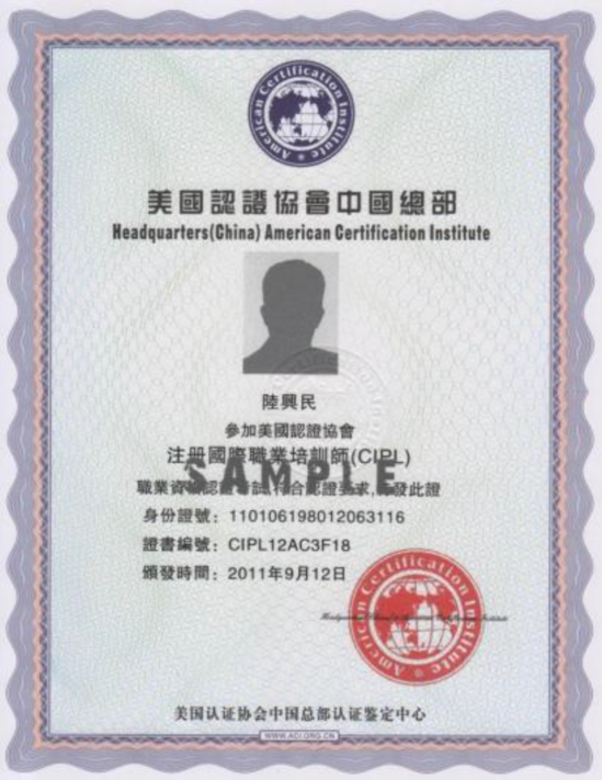 培训结束后,学员将参加书面及操作考试,考试结果将递送至美国认证协会考试鉴定中心。所有科目经鉴定合格后,颁发美国认证协会《注册国际职业培训师》职业资格证书